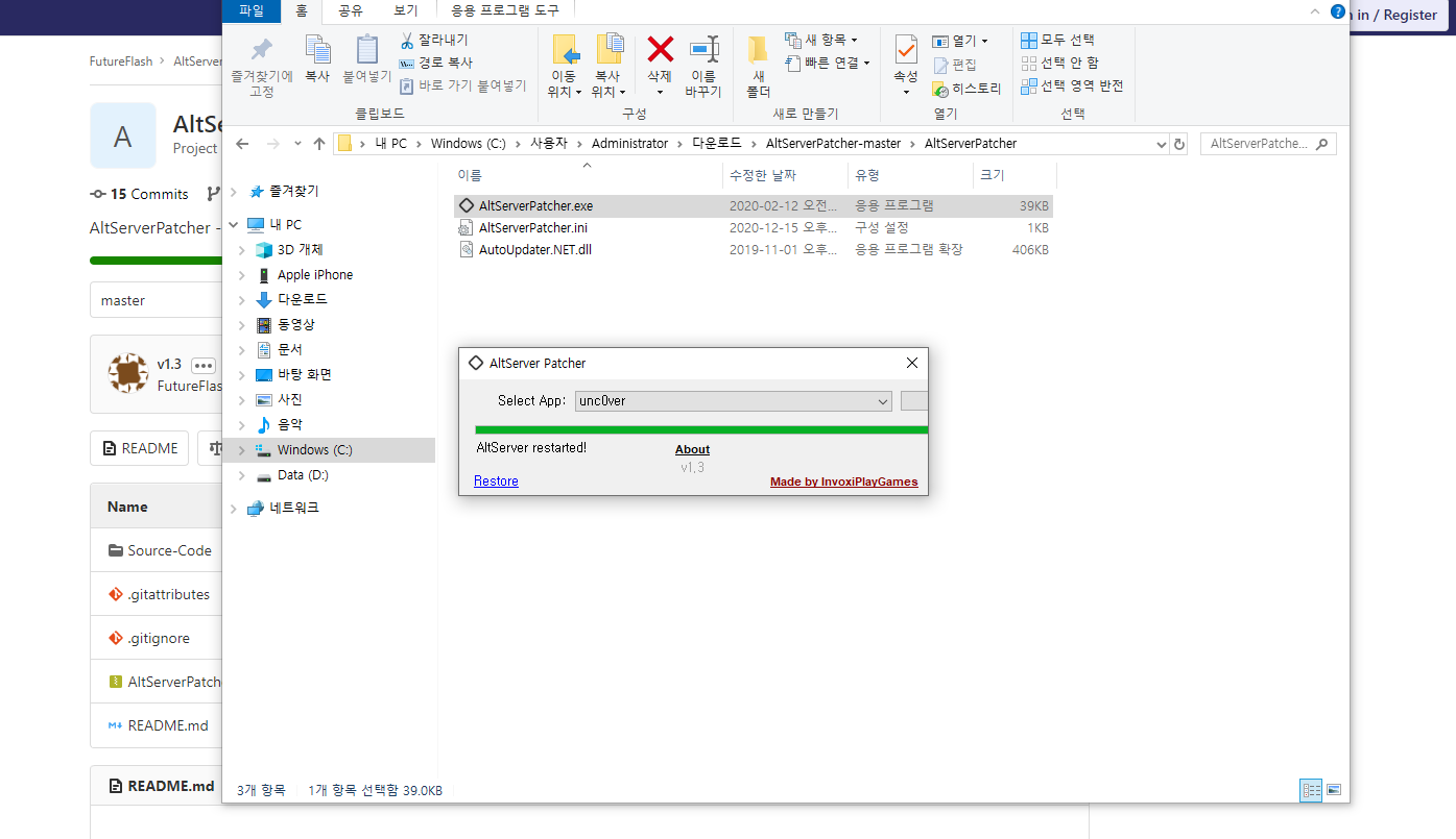 를 접속하여 AltserverPatcher를 받아 실행하여
